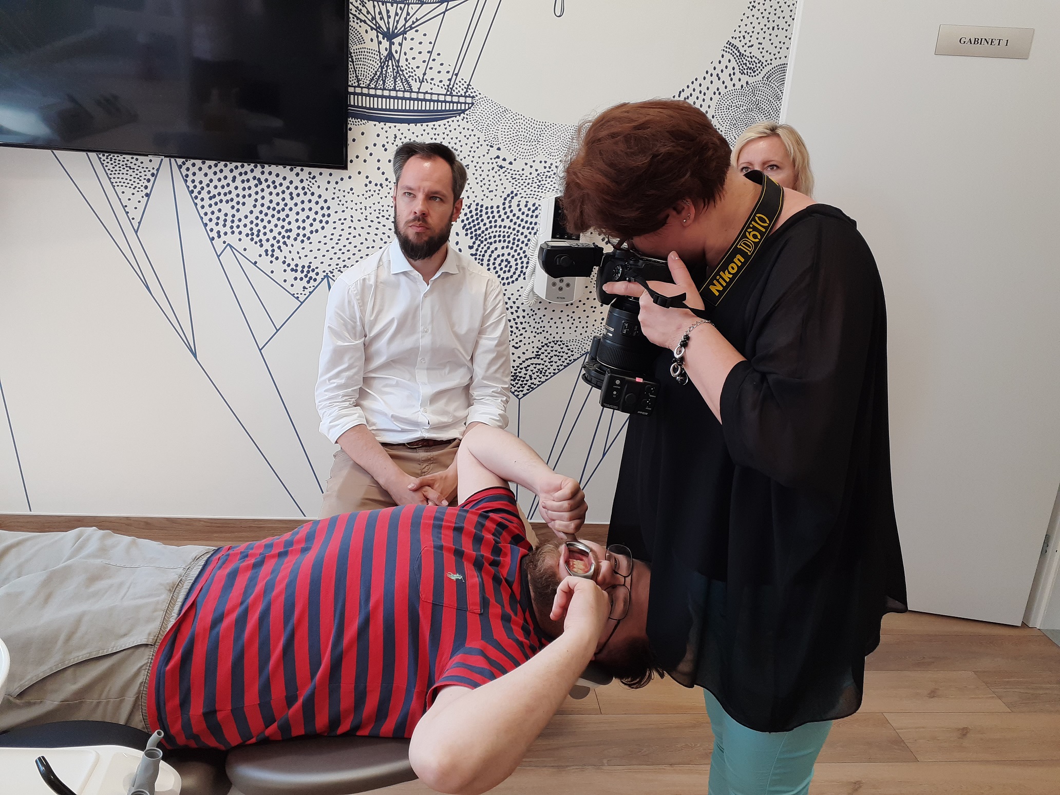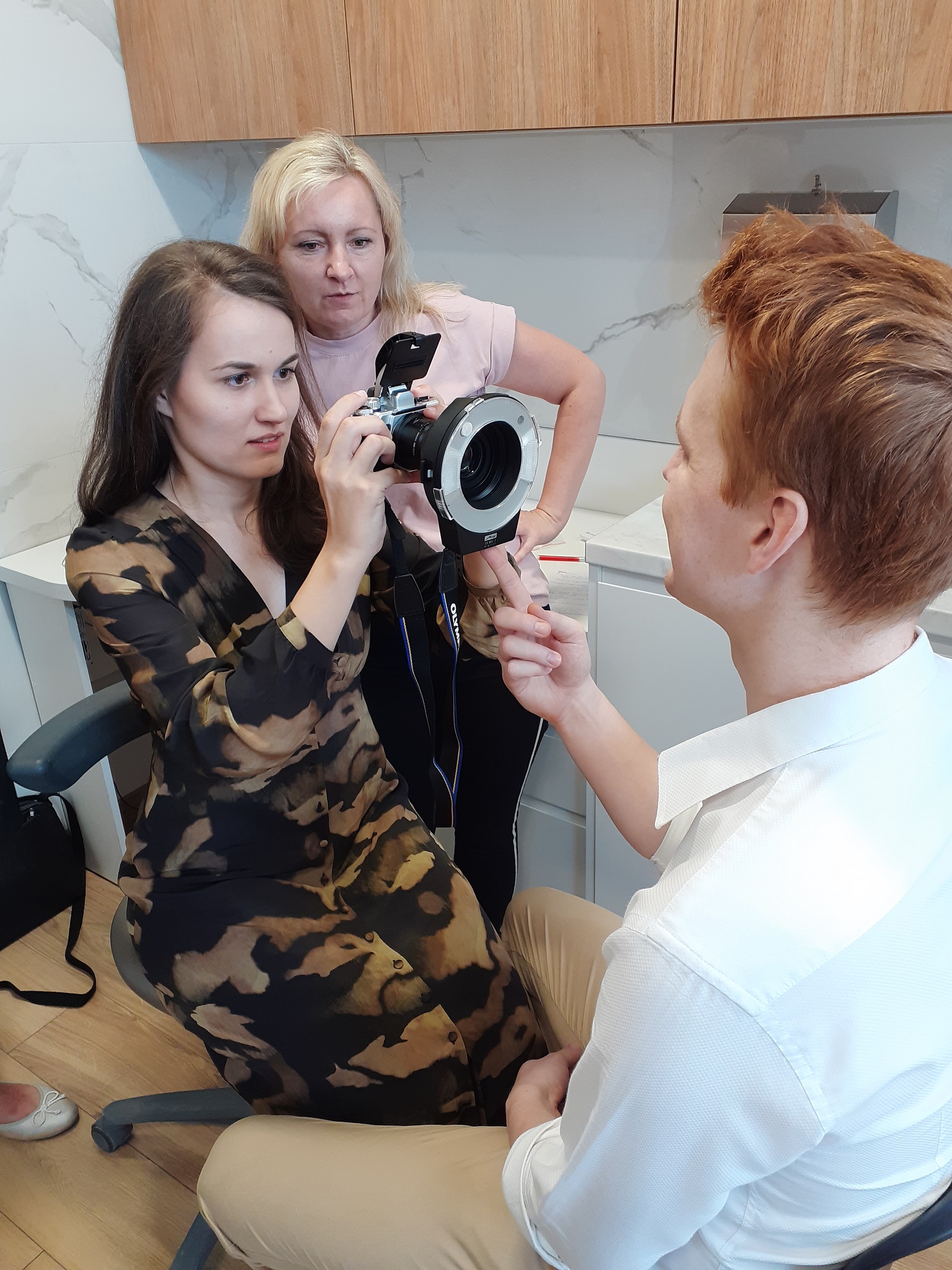 Część praktyczna odbyła się już przy wykorzystaniu różnych aparatów (lustrzanka i bezlusterkowiec). Ujęcia wykonywane były przy użyciu akcesoriów potrzebnych do wykonania fotografii wewnątrzustnej, to są: retraktory, lusterka, kontrastory. Kolejne były portrety oraz zdjęcia artystyczne wykorzystujące sprzęt stomatologiczny. Każda osoba mogła wykazać się swoją kreatywnością, a przy okazji poznać tajniki fotografii stomatologicznej. Prowadzący do każdego uczestnika podszedł indywidualnie, uświadamiając, że każdy może zrobić świetne zdjęcie.
