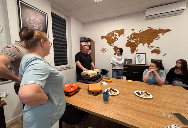 Podczas szkolenia przypomnieliśmy sobie, jak postępować w przypadku utraty przytomności, zakrztuszenia oraz nagłego zatrzymania krążenia. Omówiliśmy najważniejsze zasady działania w sytuacjach zagrożenia życia i przeanalizowaliśmy konkretne scenariusze.